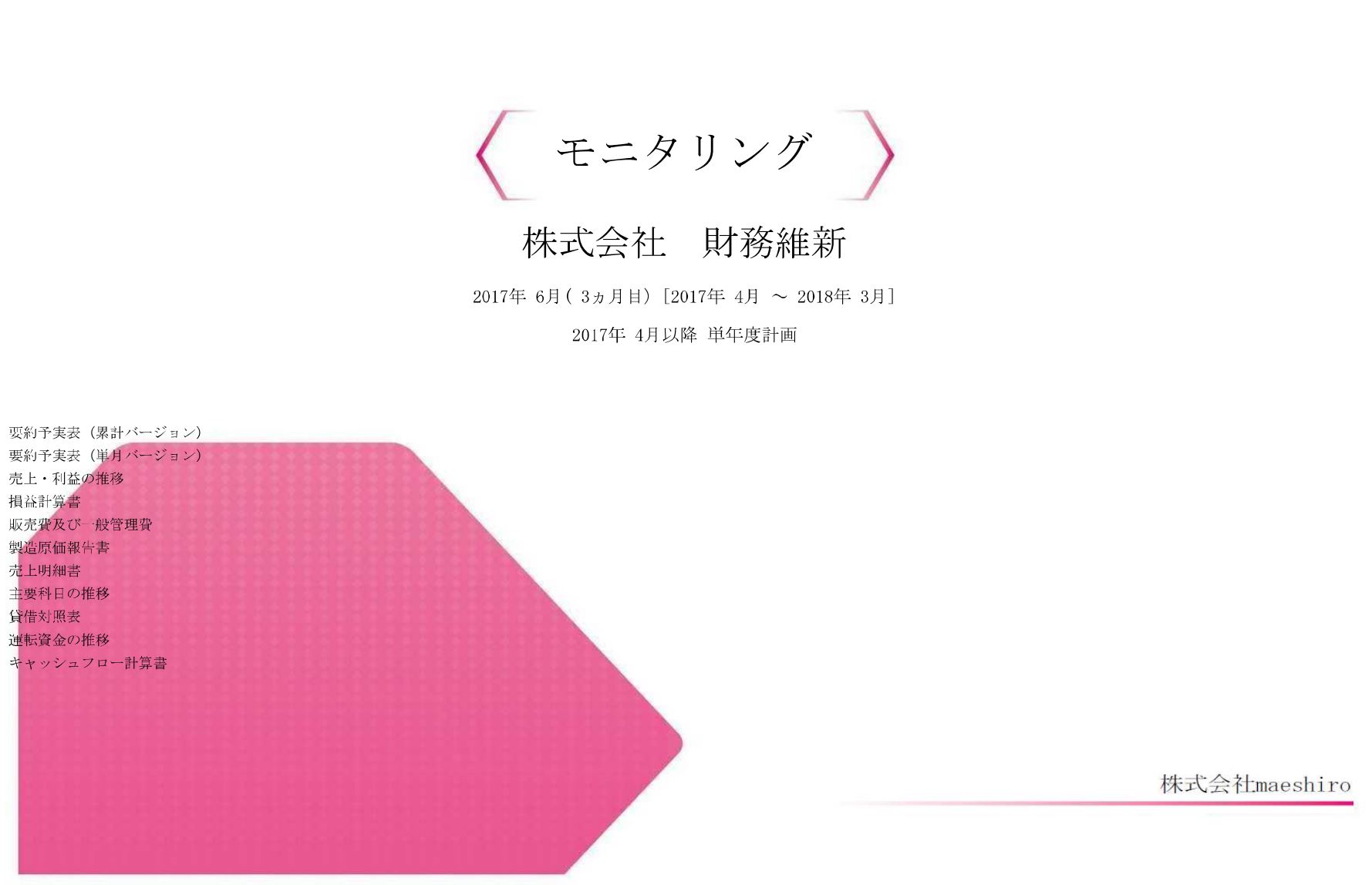 モニタリング報告書は、経営状況が前期・計画・今期の実績が一目で比較でき、経営指標や資産状況、現金の動き(キャッシュフロー)を把握することができ、主な科目はグラフ化されているので、説明しやすく理解しやすくなっています。