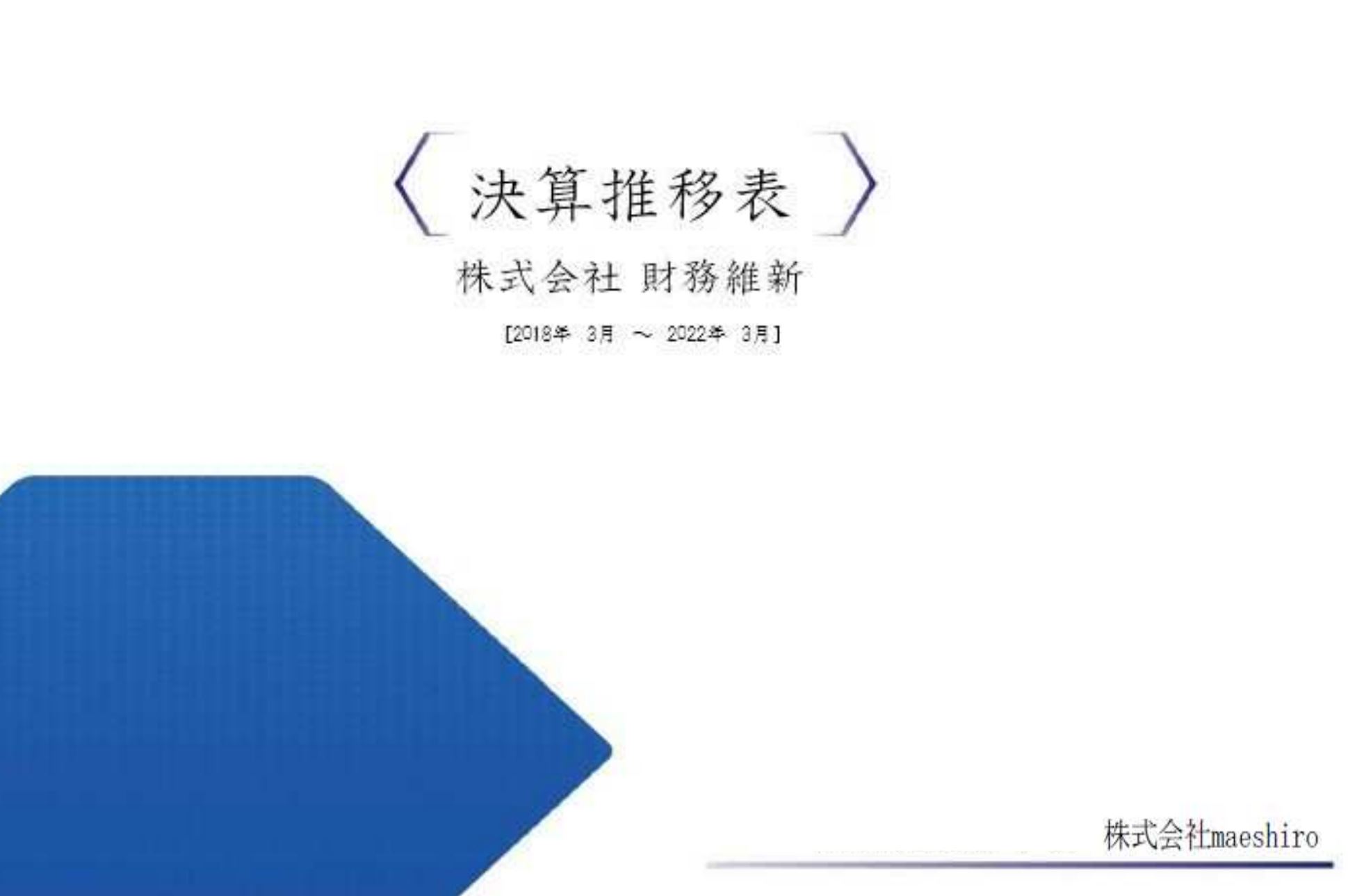 「売上・利益の推移」「販管費及び一般管理費」「製造原価報告書」「損益計算書」「貸借対照表」「運転資金の推移」「キャッシュフロー計算書」で構成されています。